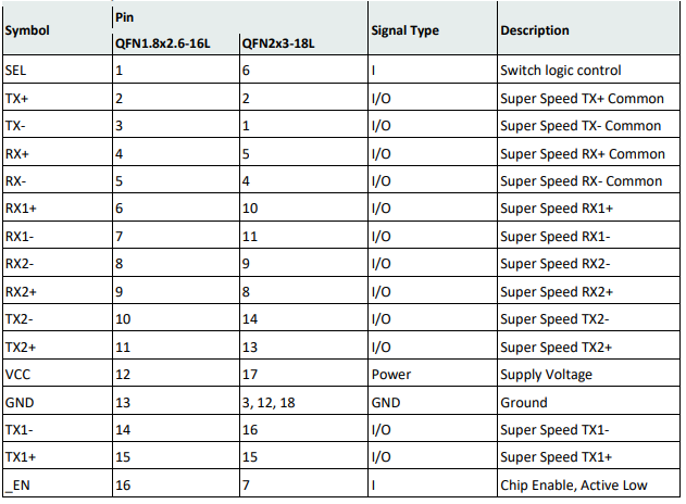 EMS4100一款适用USB Type-C应用的二通道差分2:1/1:2 USB3.1高速双向模拟开关。EMS4100采用自适应跟踪,确保该通道在整个公共模式电压范围内保持不变。良好的动态该设备的特性允许高速切换,并使信号衰减小鱼眼图,抖动很小。运行时功耗<2兆瓦,并且EN引脚可执行的关闭模式导<20 uW。