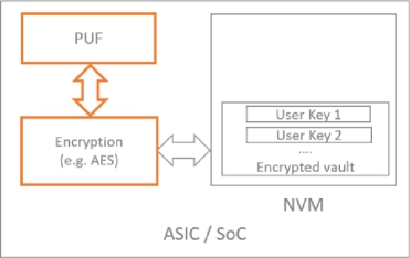 如上所述,密钥存储通常是主要问题。 PUF生成的密钥用于片上非易失性存储器(例如EEPROM,Flash 或OTP)中建立安全库。