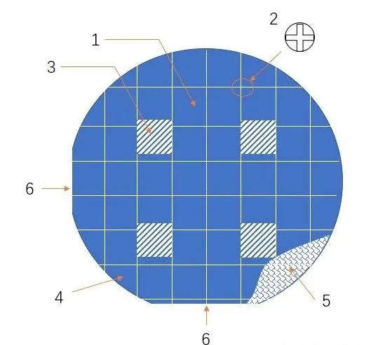划片线(scribe line、saw line)或街区(street、avenue):看上去各个晶粒像是粘在一起,但实际上晶粒与晶粒之间具有一定的间隙,该间隙称为划片线。在晶粒和晶粒之间设置分割线的是为了在晶圆加工完成后将这些晶粒一个个割断,然后组装成芯片。划片线通常是空白的,但有些公司在间隔区内放置对准标记,或测试的结构。
