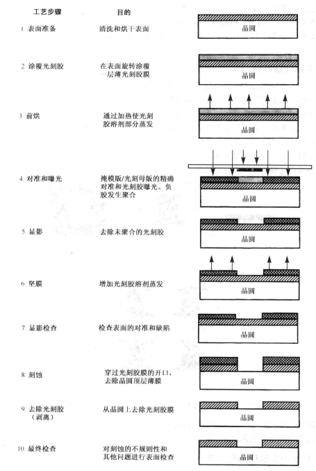光刻母版和掩膜版:光刻工艺用于晶圆表面和内部产生需要的图形和尺寸。光刻母版是在玻璃或石英板的镀薄膜铬层上生成分层设计电路图的复制图。电子束曝光系统跳过母版或掩膜版,直接在晶圆上曝光。光刻母版和掩膜版由工厂单独的部门制造或从外部供应商购买,每个电路类型都有自己分别的光刻母版或掩膜版。