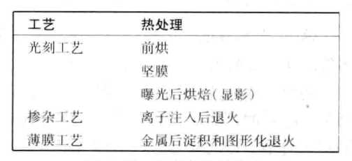 在离子注入制程后会有一个重要的热处理。掺杂原子的注入所造成的晶圆损伤会被热处理修复,这被称为退火(anneal),温度在1000℃左右。金属导线制成后为了确保良好的导电性,金属会在450℃热处理后与晶圆表面紧密熔合。热处理的第三种重要用途是通过加热在晶圆表面的光刻胶将溶剂蒸发掉,从而得到精确的图形。