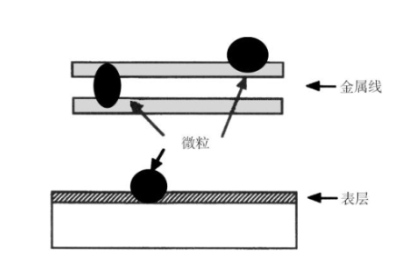 微粒的大小必须是第一层金属半个节距的一半。半个节距是相邻金属条之间间距的一半。落于器件的关键部位并毁坏了器件功能的微粒被称为致命缺陷。致命缺陷还包括晶体缺陷和其他由工艺过程引入的问题。