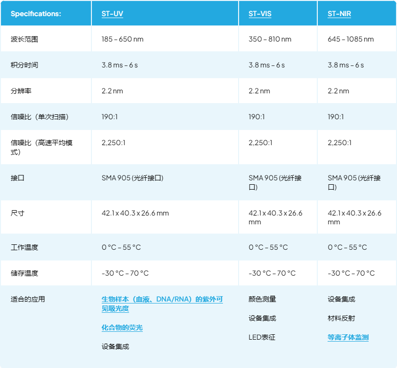 海洋光学微型光谱仪(ST系列)非常适合集成到OEM设备和空间有限的在线控制系统中,并具有强大的性能。