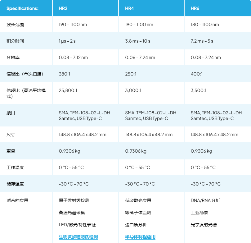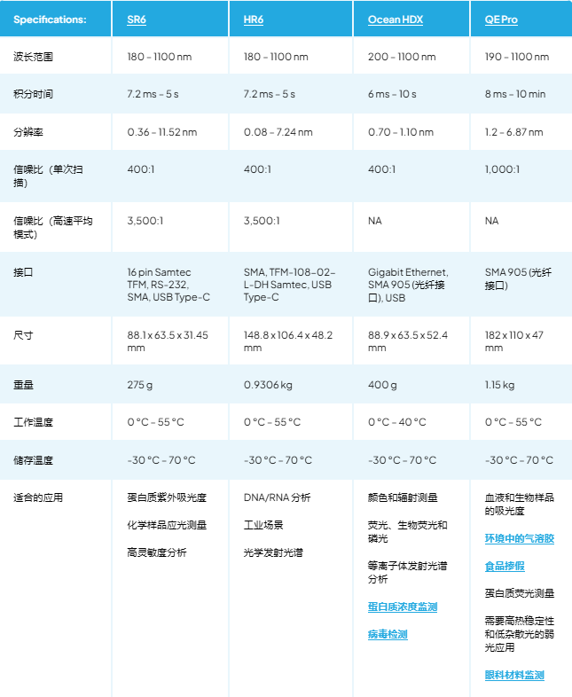 海洋高灵敏度光谱仪(SR6、HR6、OceanHDX、QEPro)结构紧凑、功能强大,在检测微妙信号方面表现出色。非常适合集成,可在各种应用中提供准确的结果。