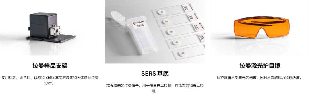 海洋光学提供拉曼测量附件,包括激光护目镜、基于拉曼探头和 SERS 进行拉曼分析的样品支架。